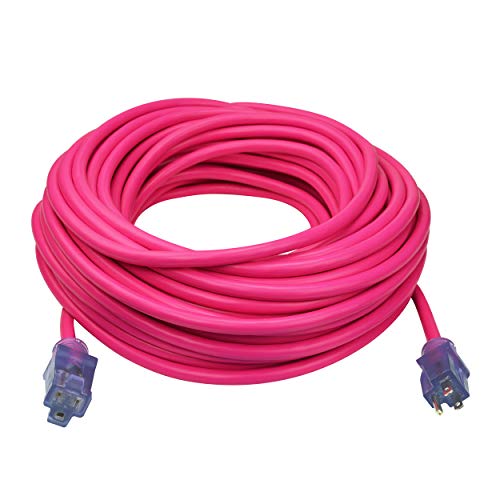 Professional reviews from industry experts Clear Power 100 ft Outdoor Extension Cord 12/3 SJTW Heavy Duty with Lighted Connector, 3 Prong Grounded Plug, Water & Weather Resistant, Flame Retardant, Hi-Vis Pink, DCOC-0104-DC